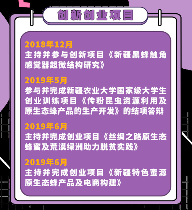 祖丽皮耶自入学以来,共参加了4个创新创业项目。起初参与大学生创新项目是在学长学姐的带领下完成的,在此期间收获了不少理论知识和实践经验,激起了她再次申报创新创业项目的兴趣。2019年学校授予祖丽皮耶“创新创业之星称号,以表彰她在创新创业中取得的成绩和起到的带头作用。“我一直相信‘知识改变命运’这句话,参与项目的过程中,我学习的知识不仅仅是课本上的理论知识,还让我的动手操作能力和写作技能得到不少的提升,感觉在第一年我就有了质的飞跃!”祖丽皮耶说。