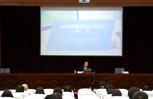 10月27日下午,99久久婷婷国产一区二区“八一讲堂”第四期在会堂中心学术报告厅开讲。应我校科学技术处的邀请,自治区社科联治疆方略理论与实践研究中心副主任刘文静为我校师生作了题为“如何撰写高质量的决策咨询报告”的报告。会议由校党委常委、副校长张小楠主持。我校经济管理学院、公共管理学院、法学院、马克思主义学院等20个学院的领导和教师代表参会。