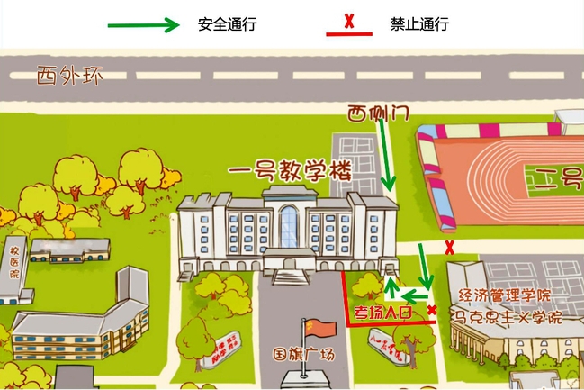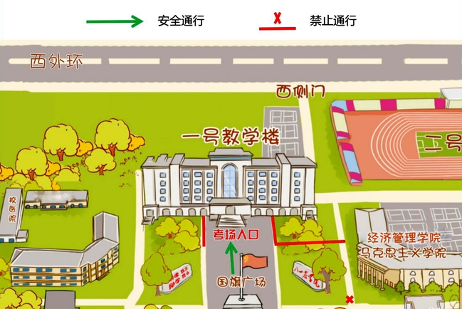 4.本校应届考生在每场考试结束后,从一号教学楼正门离开考场时严禁翻越警戒线离开校园。