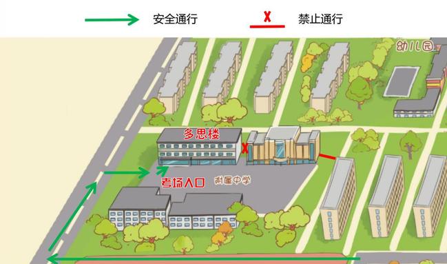 3.非本校应届考生在每场考试结束后,从原路离开考场,经过安全通道离开学校时,严禁翻越警戒线进入校园。