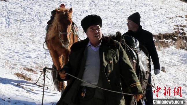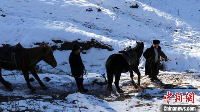 当路过一处结冰河段,张国林翻身下马,牵着马溜冰滑过,动作灵敏,看不出是年近六旬的人。遇到窄道,他夹紧马肚子,蹬几下,马蹄便在黄土与白雪夹杂的路面留下一行印痕,顺山而上。