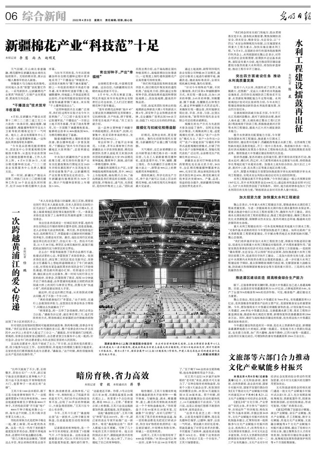 “这项种植技术在北疆广泛使用,我们经过两年实验才在今年大面积推广。”三〇团十连党支部书记张建军说,“干播湿出”一方面让土地不用冬春灌,节省了浇水等费用,另一方面膜下滴灌精准度高,能够将出苗率从80%提高到90%,为棉花增收奠定了基础。