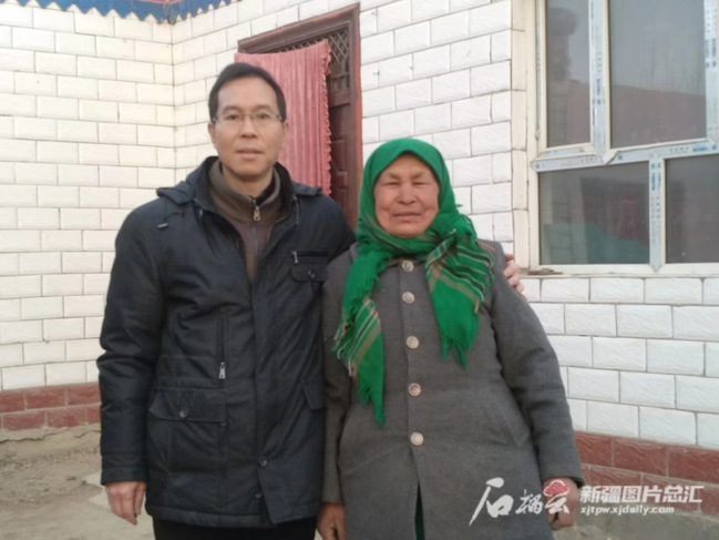 阿依吐松的老伴去世得早,儿子也不在身边,安占峰记得第一次见到阿依吐松时,老人面色凝重,十分拘谨。“身体好吗?”“家里种了几亩地?”安占峰说了一口流利的维吾尔语,他主动上前向老人打招呼、拉家常,没有语言障碍,两人一下拉近了距离。从那之后,每隔十天半个月,安占峰就提着米面油、水果等物品看望老人。老人平时省吃俭用,入冬了,安占峰怕她舍不得烧煤,特意从镇上拉来了一吨优质无烟煤,有了煤,冬天阿依吐松的屋子暖烘烘的。