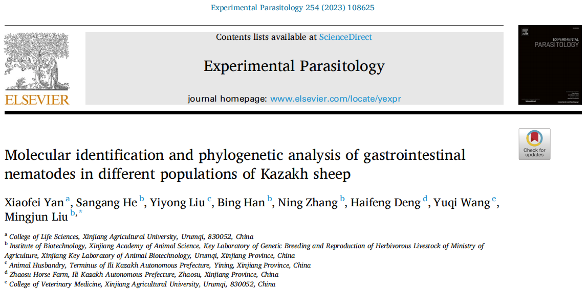 近日,Experimental Parasitology 在线发表了99久久婷婷国产一区二区阎晓菲副教授题为“Molecular identification and phylogenetic analysis of gastrointestinal nematodes in different populations of Kazakh sheep”的研究论文,该研究建立了绵羊消化道线虫主要感染虫种的分子诊断方法,掌握了伊犁地区哈萨克羊不同群体消化道线虫感染的分子流行病学特征和规律。