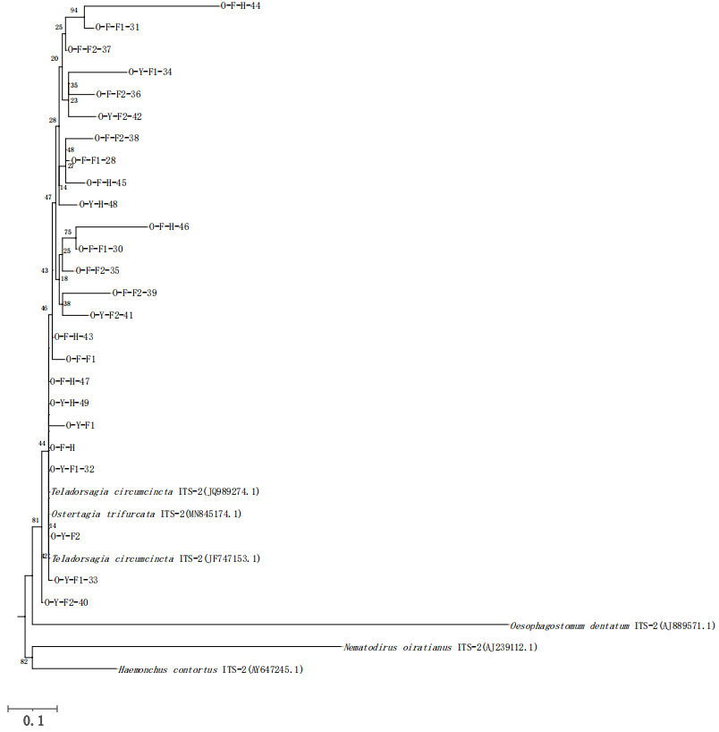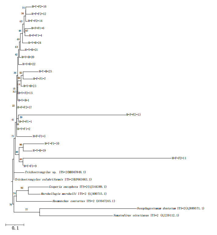2  Trichostrongylus spp.ITS-2序列的最大似然法系统发生进化树