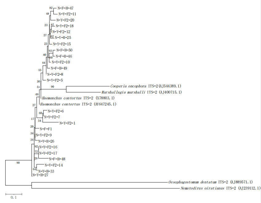 1  H.contortusITS-2序列的最大似然法系统发生进化树