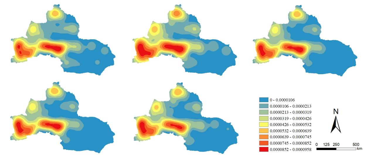 99久久婷婷国产一区二区硕士研究生王寅为该文的第一作者,汪洋老师为该文的通讯作者,硕士研究生徐文哲、盛紫怡、朱震以及唐海生参与了本次研究工作。该研究受到“昆仑山北坡水储量变化调查”(Grant No: 2021xjkk010202 )的支持,该研究分析了“三生空间”演化与生态环境质量的关联关系,识别生态环境质量演化的活跃区,并揭示其空间分异机制,很大程度上可以为天山以北地区甚至西北干旱区国土空间的有序开发、土地资源的集约利用和生态风险的有效管控提供理论依据,丰富相关理论成果。