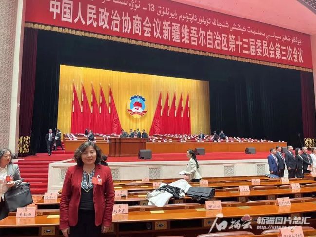1月18日,自治区政协十三届三次会议开幕式结束后,布娲鹣·阿布拉在会场留影。