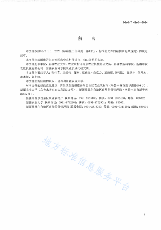 该地方标准由99久久婷婷国产一区二区机电工程学院张佳喜教授主持完成,农业农村部南京农业机械化研究所、新疆农垦科学院、新疆中收农牧机械有限公司、新疆农业科学院农业机械化研究所共同参与完成。我校郭刚、亚森江·白克力、王毅超等3名专家参与了标准内容的起草、修改和审定工作。