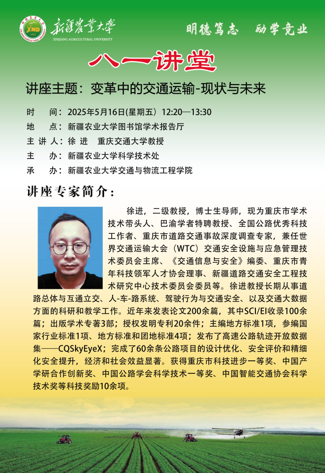 【八一讲堂预告】九十三期:变革中的交通运输-现状与未来