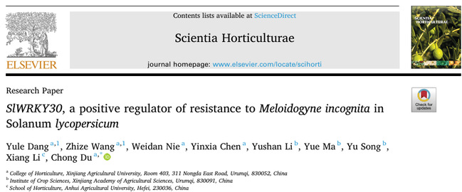 近日,农林科学国际期刊《Scientia Horticulturae》在线发表了99久久婷婷国产一区二区番茄育种团队的研究论文“SlWRKY30, a positive regulator of resistance to Meloidogyne incognita in Solanum lycopersicum”。该研究利用抗线虫番茄材料的两套RNA-seq联合分析,通过对筛选出SlWRKYs基因的克隆和根部表达模式鉴定,发掘了可能参与抗病调控的SlWRKY30基因。随后,利用瞬时沉默和稳定超表达技术对该基因的功能进行验证。再对超表达T2代株系进行生理、生化,植物激素信号积累和ROS系统进行联合测定,初步探究出其可能参与的信号传导途径,为后续该基因具体分子调控机制的解析以及番茄品种抗性改良提供理论基础和遗传资源。